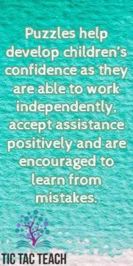 Puzzles help develop children’s confidence as they are able to work independently, accept assistance positively and are encouraged to learn from mistakes.